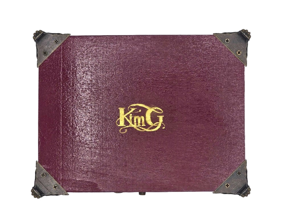 - Bottom Paint: Signature glossy red wine with gold-stamped artist logo.